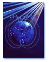 Ensuite des atomes d’hydrogène, plus légers et chargés positivement, accompagnés de molécules d’eau également chargées, se concentrèrent dans les lignes de flux d’énergie du champ magnétique au-dessus de la Terre.