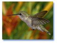 Le battement de leurs ailes qui atteint 80 battements d'ailes par seconde pour un déplacement régulier d'avant en arrière, peut atteindre 200 battements par seconde pour un vol en plongée ce qui fait de lui l'oiseau aux battements d'ailes le plus rapide.